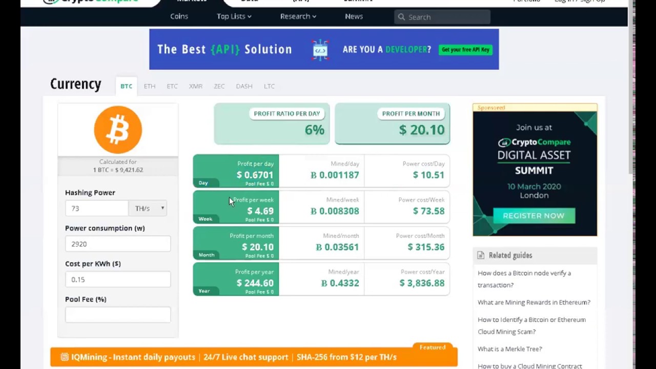 cryptocompareの使い方 マイニングの報酬の計算方法があっという間に分かる簡単講座 (Crypto Compare編)