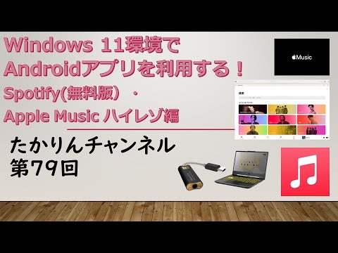 Windows11におけるAndroidアプリの利用方法について今回ご案内してます。今回は、Apple MusicとSpotifyについて動作・起動確認を行ってます。