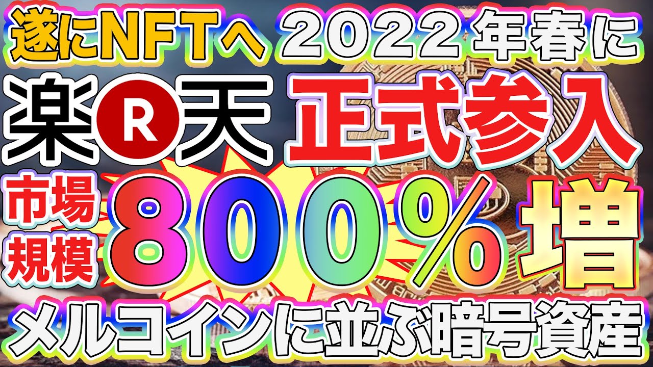 【楽天が遂にNFTに正式参入】Rakuten NFTが2022年春にリリース!メルコインに並ぶ一大マーケット到来で市場規模300%増へ【仮想通貨】【ビットコイン】