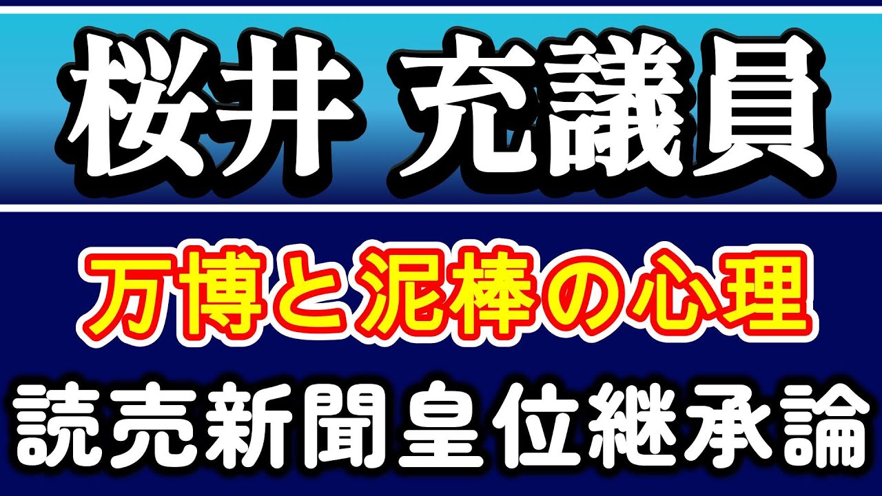 #桜井充 #ゆみりん #愛子さま #泥棒 #大阪万博 #横田由美子チャンネル #読売新聞 #皇位継承論 #宮内庁 #女性天皇 #女系天皇
