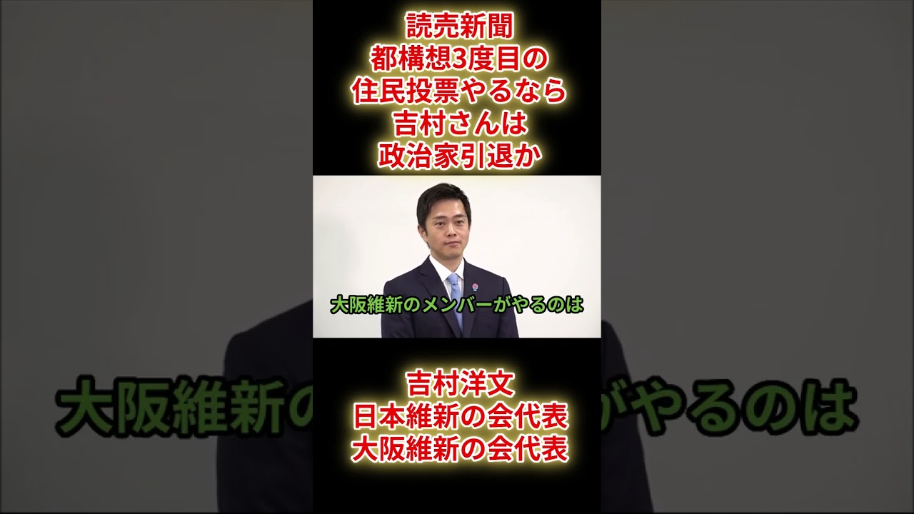 読売新聞「都構想3度目の住民投票は吉村さんは政治家を引退か」、吉村洋文大阪維新の会、日本維新の会代表会見2025年(令和7年)9月24日(水)囲み会見