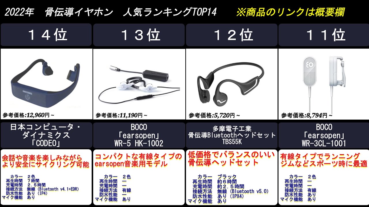 2022年【耳をふさがず音が聴ける】骨伝導イヤホン 人気ランキング TOP14