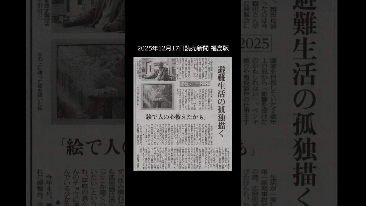 絵をみても腹はふくれん 2025.12.17 ニュース X Facebook Hatena Bookmark Pocket LINE Copy 2025/12/29 今日、読売新聞に師匠の鶴田先生の記事が掲載されました。
