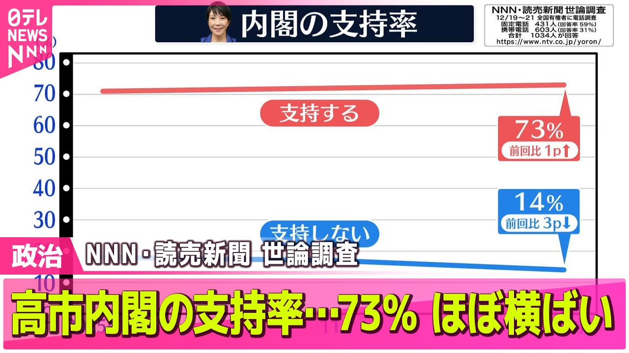 【政治】NNN・読売新聞 世論調査 高市内閣の支持率…73% 先月からほぼ横ばい ── 政治ニュースまとめ (日テレNEWS LIVE)