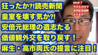 ニュース 読売新聞の意図 男系男子の終焉 悠仁くんをゆるがせにする ※準備の都合で配信時間が変わる可能性がございます